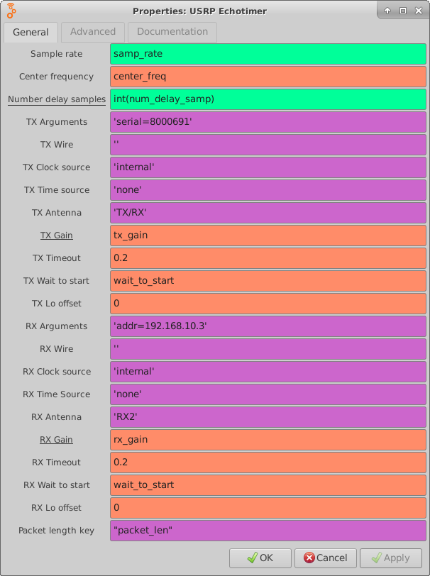 settings of the USRP Echotimer block are attached. What could be