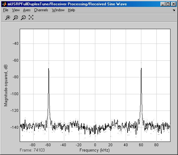 Could you please comment and perhaps provide an illustration of how to configure the N210/SBX using both MATLAB and Simulink so that a signal is transmitted from the RF1 port and received by the RF2. As a suggestion, slider controls could be used in Simulink to independently adjust the RF settings of both the transmitter and receiver to include at least gain and center frequency. A spectrum of the received signal should be displayed.