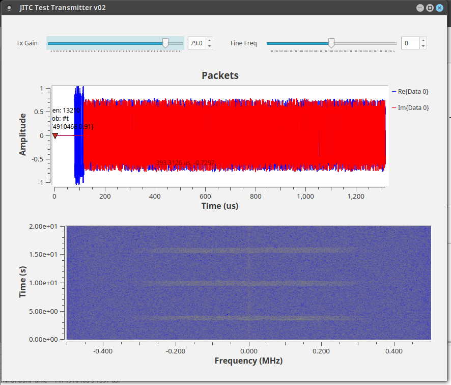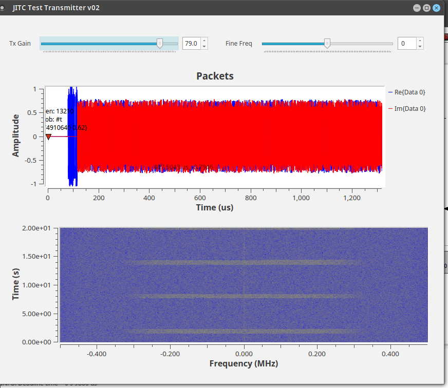 Packets are transmitted at 100 packets/second and are ~1300 us in duration (fixed).
