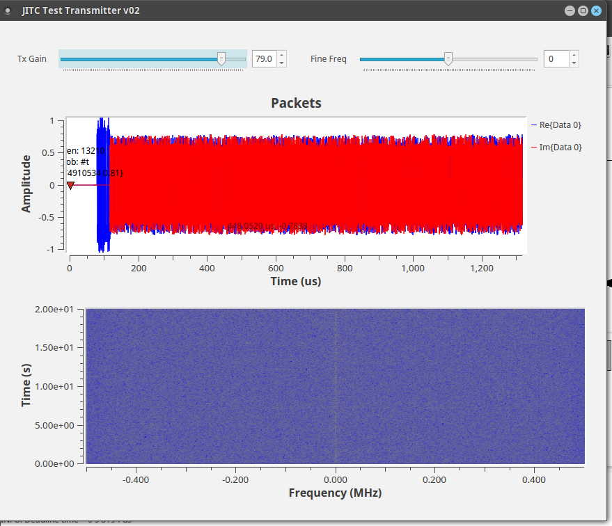 I include some images below for consideration. The “Packets” display is the transmitted signal. The received noise burst amplitude is proportional to the transmit gain, and it quite low, but not insignificant.
