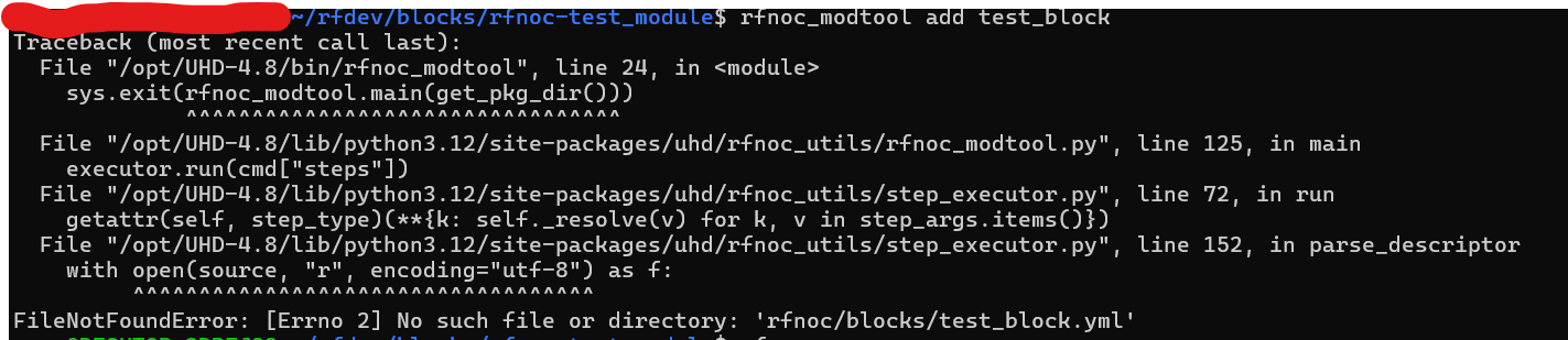running "rfnoc_modtool add test_block" generates the following error: